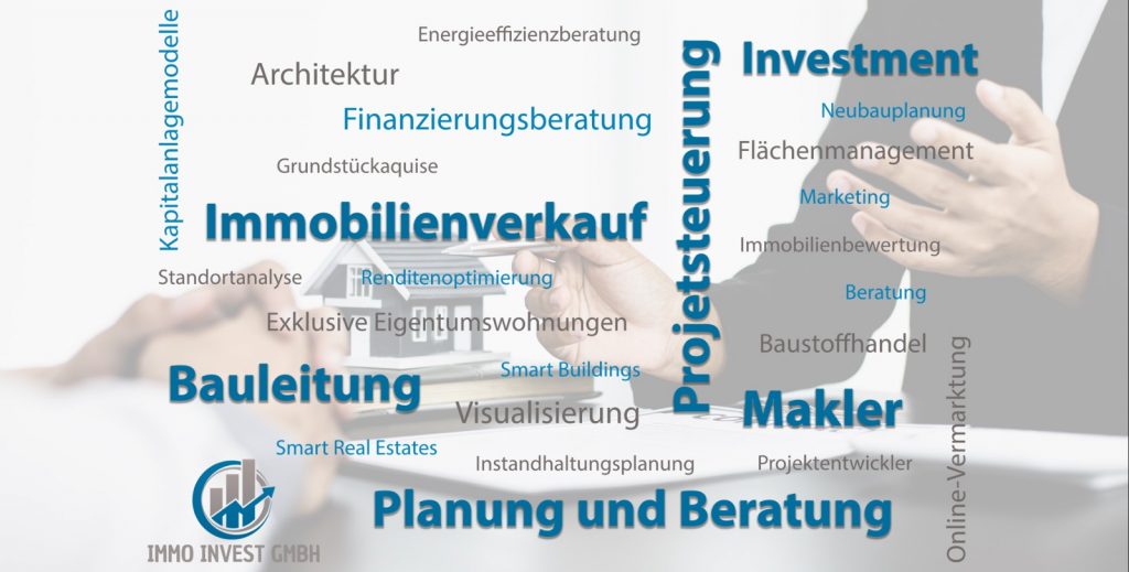 Herzlich Willkommen bei der Immo Invest GmbH, unser Makler- und Planungsbüro steht für eigene Projektentwicklung und dessen Bauliche Umsetzung! Hier trifft Theorie und Praxis im Bausektor nahtlos zusammen. Von der ersten Idee über die präzise Planung bis zur schlüsselfertigen Realisierung bieten wir alle Leistungsbausteine aus einer Hand an. Wir bündeln Immobilienentwicklung, Bauleistungen, Architektur und Vertrieb in einer stabilen Partnerschaft.